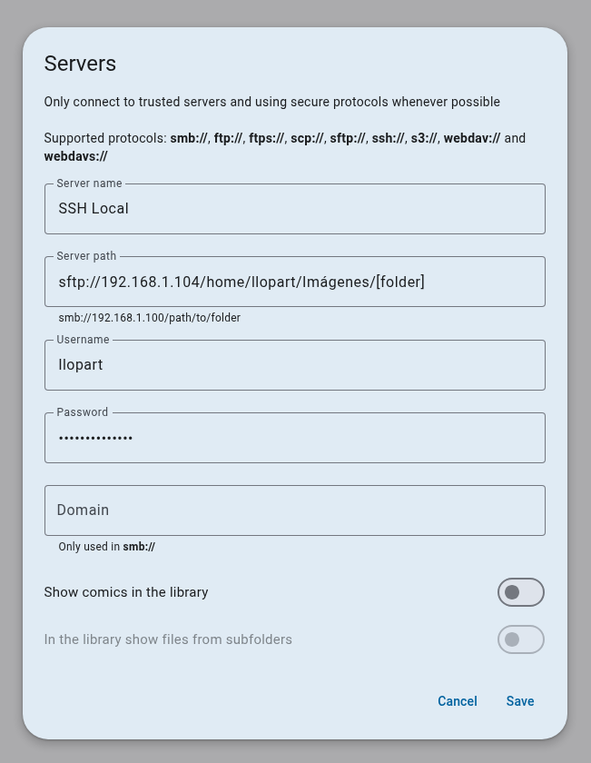 smb://ftp://ftps://scp://sftp://ssh://s3://webdav://webdavs://